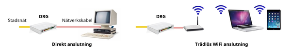 DRG:n är dels en fiberkonverter som omvandlar den optiska signalen i fibernätet till en digital signal för nätverkskabel. Den är också en tjänstefördelare som har flera portar för data, telefoni, tv som säkerställer prestandan för varje tjänst. Det innebär att tjänsterna alltid får rätt bandbredd och stör inte varandra.