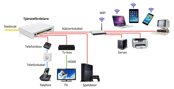 Stadsnätet levererar också tv och telefoni med hög kvalitet. Och med tjänstefördelaren säkerställs att alla tjänster får den kapacitet de behöver, även i mer komplexa nätverk.