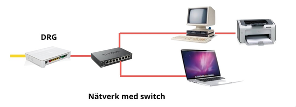 Koppla datorn direkt till nätverksuttaget eller anslut trådlöst via en WiFi router. Eller bygg ett större nätverk via en switch.